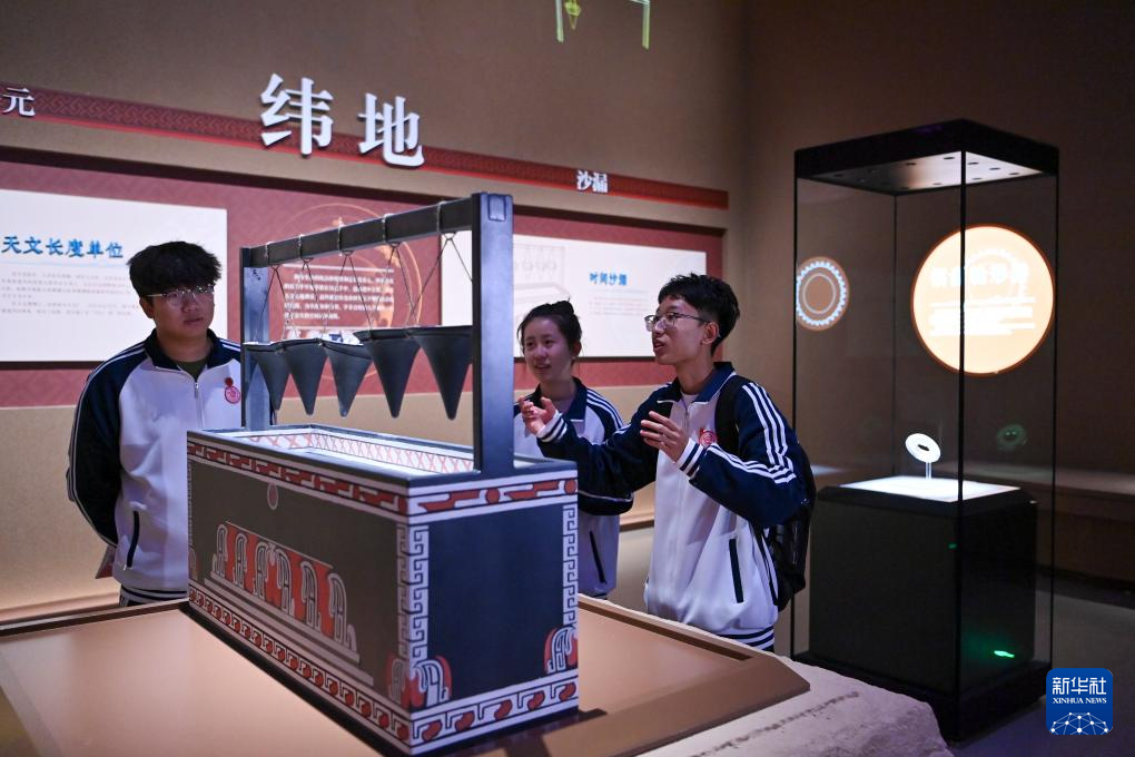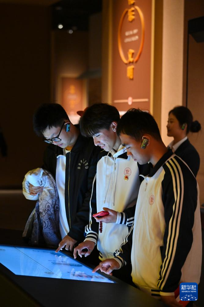11月12日,在陶寺遗址博物馆,游客通过电子屏幕互动。