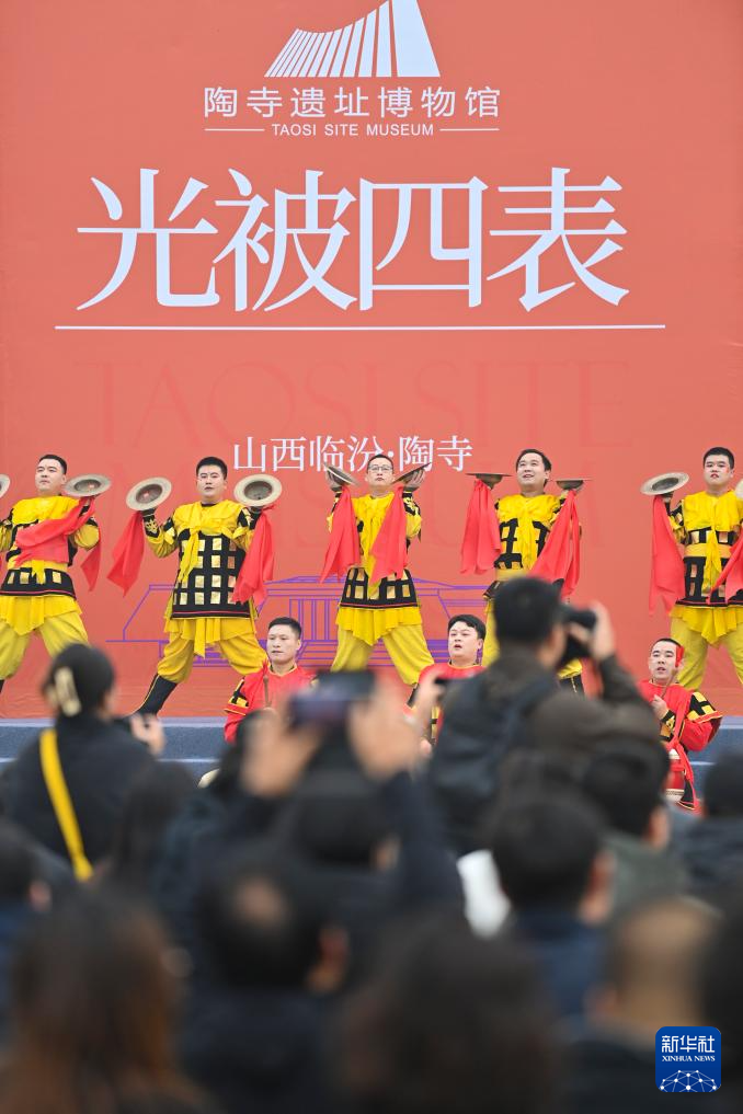 11月12日,演员在陶寺遗址博物馆开馆仪式上表演。