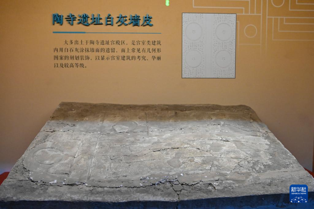 这是在陶寺遗址博物馆内展出的陶寺遗址白灰墙皮(11月12日摄)。