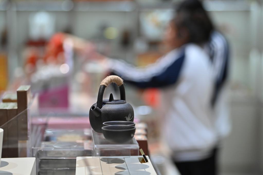 11月12日,游客在陶寺遗址博物馆内的文创商店选购商品。