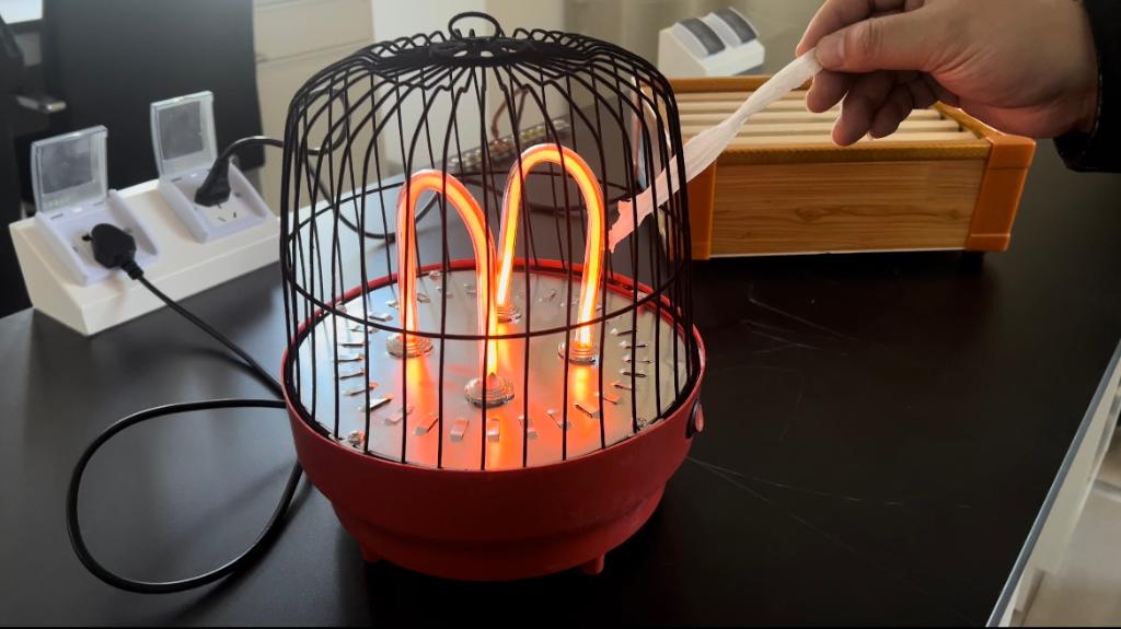 “鸟笼取暖器”仅仅加热了十几秒,产品中心温度就迅速达到150度以上;纸巾接触到中心区域,2至3秒就着起了火。“这类产品如果在家里使用,稍有不慎就可能着火。”山西省电力科学研究院高压技术室专责相海欣说。