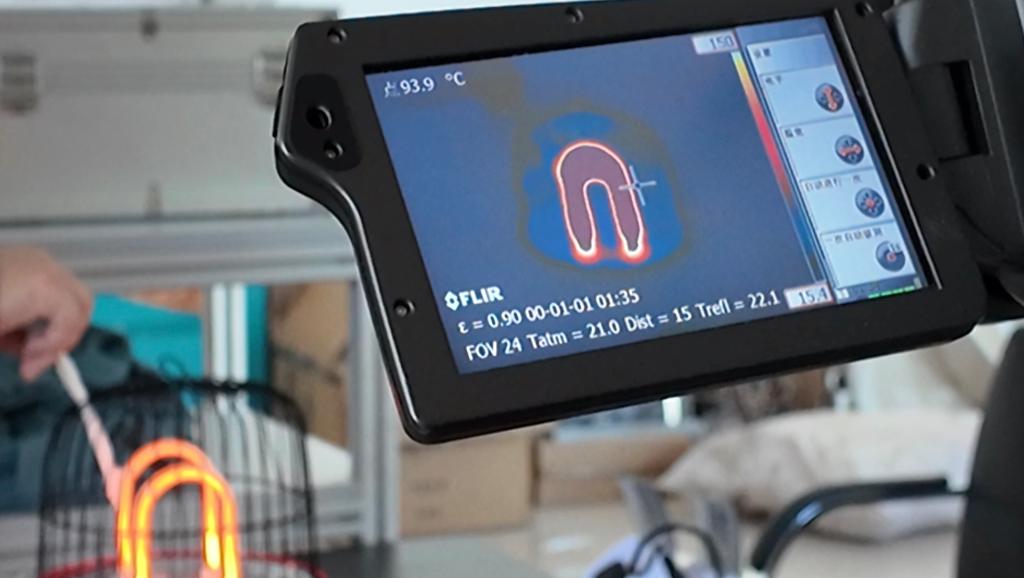 在山西省电力科学研究院高压技术室,专家对“鸟笼取暖器”进行安全测试。新华社记者 张哲摄