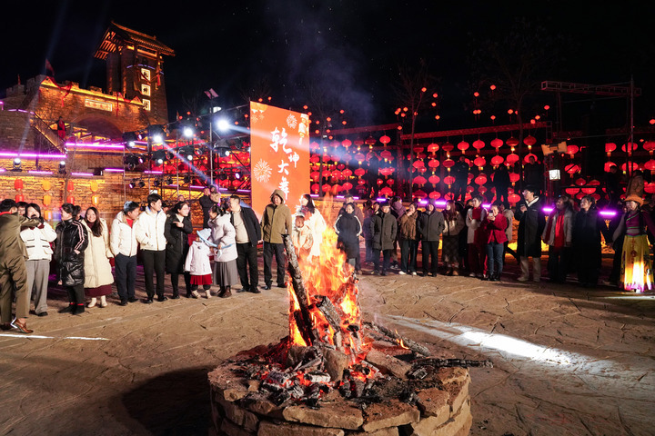 春节假期,偏关县乾坤湾村组织了篝火晚会,来自全国各地的游客和附近村民参与其中。(偏关县委宣传部供图)