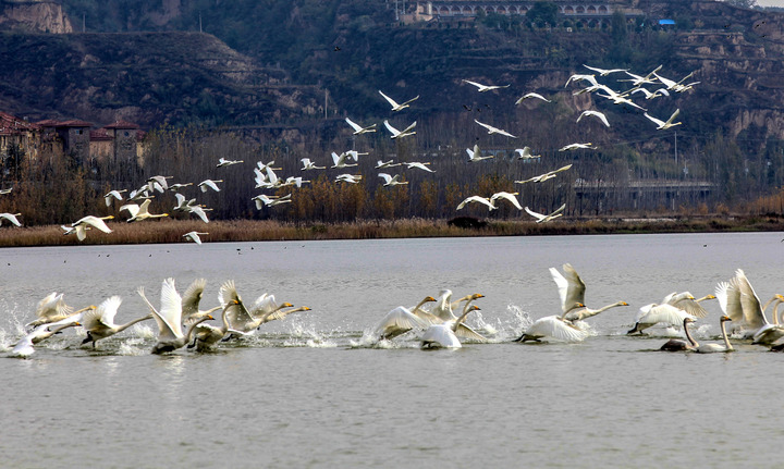 連日來,隨著氣溫持續(xù)回升,在山西平陸黃河濕地棲息越冬的萬余只白天鵝陸續(xù)北飛,這群“西伯利亞來客”在黃河濕地居留了4個多月后,終于要“啟程”返回家鄉(xiāng)。(新華社記者王飛航)