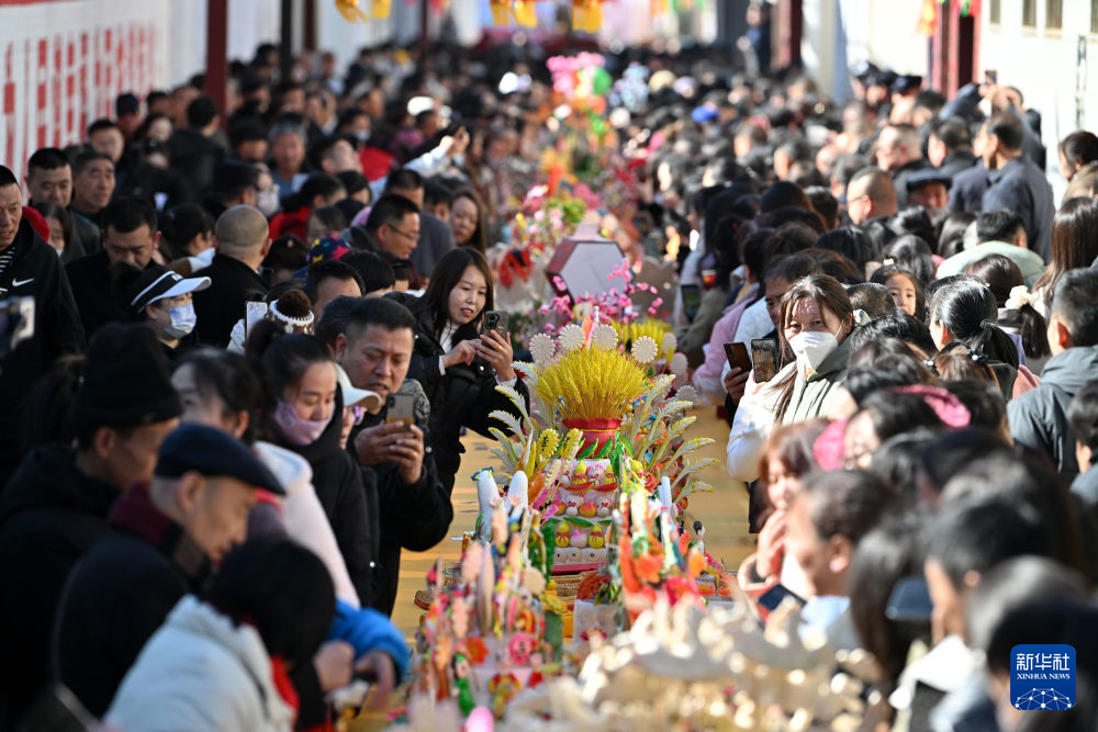 当日是农历二月十九,每年农历这一天,吕梁山区的山西省岚县岚城镇的乡亲们都会将精心制作的面塑摆上街头进行展示,形成一条百米长的“面塑长河”。这些面塑作品造型各异、精巧绝伦,寄托了人们对美好生活的期盼。
