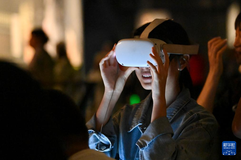 5月17日,游客通过VR设备游览太原北齐壁画博物馆。