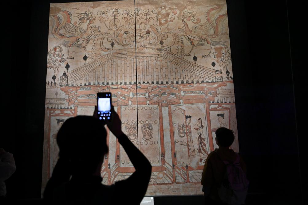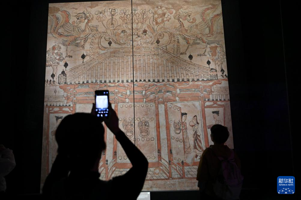 5月17日,游客在太原北齐壁画博物馆参观。