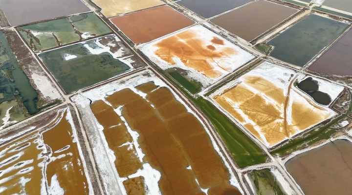 連日來,隨著氣溫持續(xù)升高,位于山西南部的運城鹽湖呈現(xiàn)出色彩斑斕的景象,從空中俯瞰,如同一塊塊散落在大地上的調(diào)色盤。(新華社記者王皓)