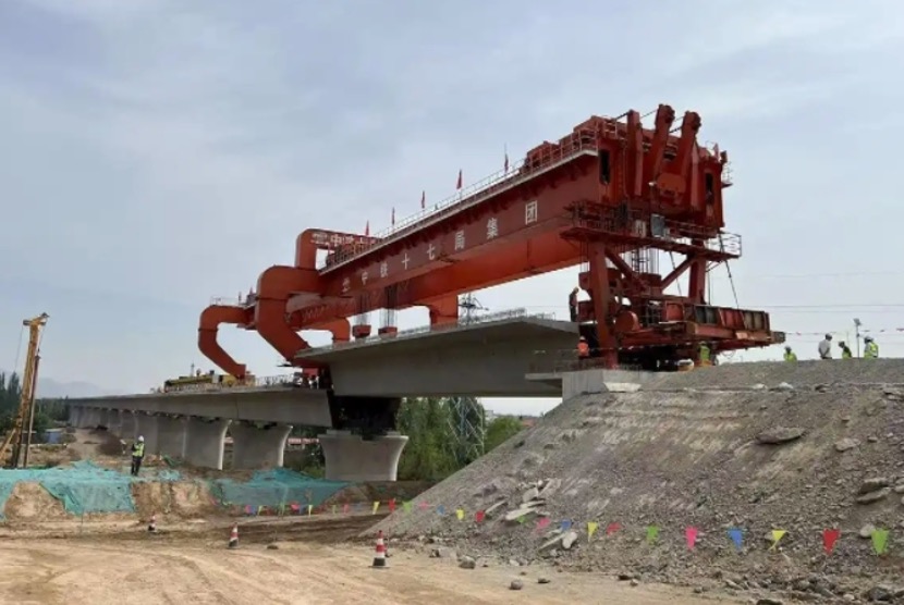 5月15日10時,隨著最后一榀長32米、重約697噸的箱梁架設(shè)完成,雄忻高鐵最長橋梁五臺山機場特大橋箱梁架設(shè)任務(wù)全部完成。這是全線首個完成箱梁架設(shè)的特大橋,為線路按期貫通奠定堅實基礎(chǔ)。(新華社記者許雄)