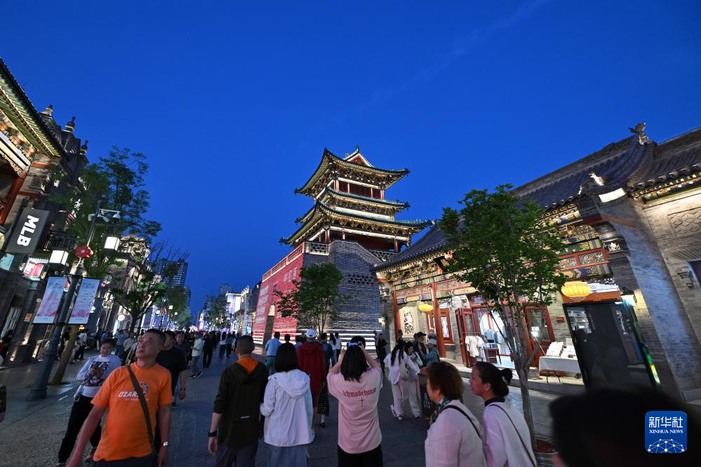 夜幕降臨,太原市鐘樓街、食品街等特色街區(qū)及汾河兩岸流光溢彩、游人如織。近年來,太原市不斷豐富夜經(jīng)濟消費業(yè)態(tài),開展多種夜間活動,打造集美食、觀光、購物等于一體的夜經(jīng)濟消費圈,豐富市民游客夜生活。(新華社記者詹彥)
