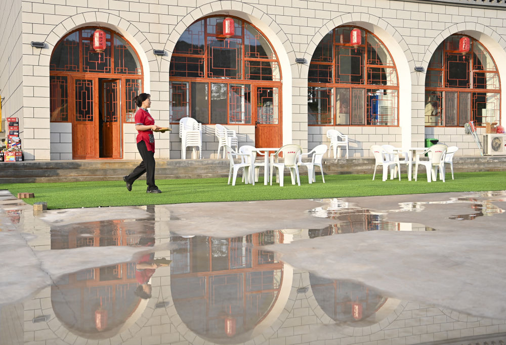 山西省吕梁市兴县蔡家崖乡蔡家崖村村民牛雨梅告诉记者,村里开了农家乐,她在那里打工,一个月工资三千五百元。