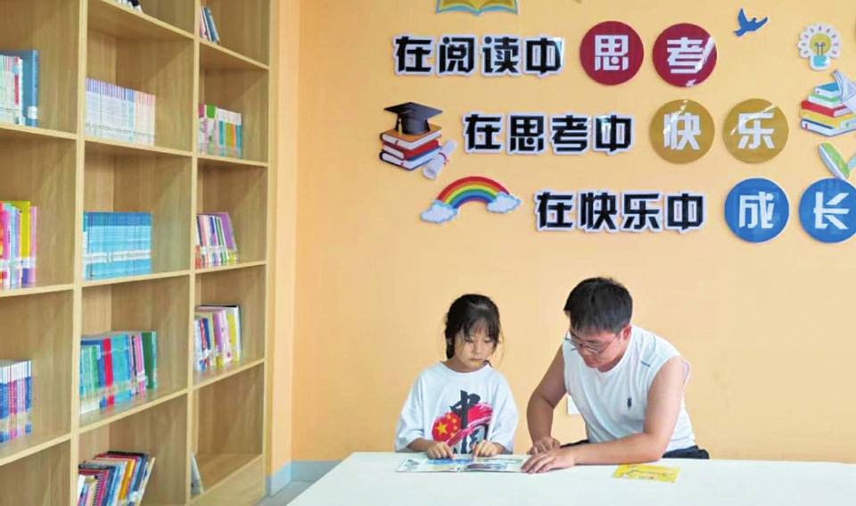 方山县图书馆少儿阅读区的亲子阅读。记者高桦摄