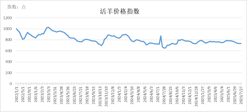 7月27日,活羊价格指数报733.80点,较上期上涨0.35%,价格报10.53元/斤,较上期上涨0.04元/斤。