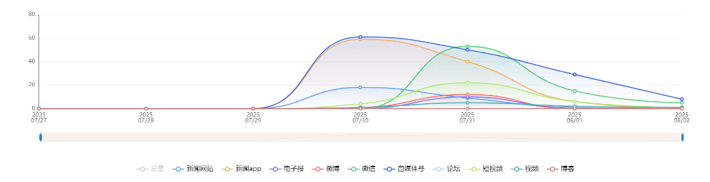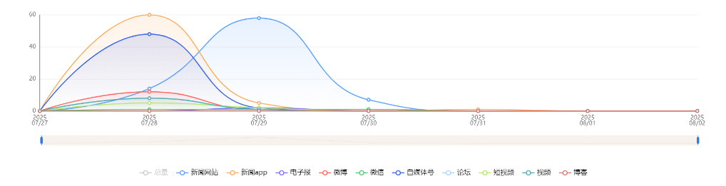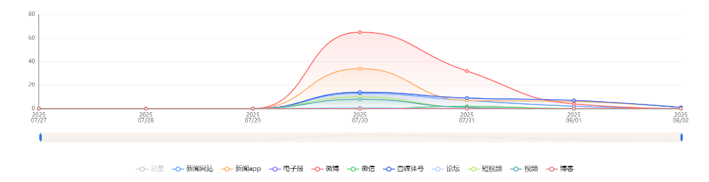 截至目前,該文章在互聯(lián)網(wǎng)上傳播總量共225篇。各信源的信息發(fā)布情況中,微博占比最大,其次是新聞APP。(數(shù)據(jù)來源:新華睿思·數(shù)媒智慧分析平臺)