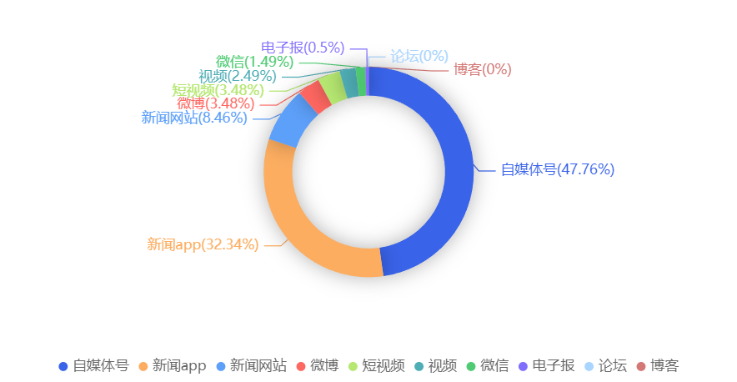 截至目前,該文章在互聯(lián)網(wǎng)上傳播總量共24篇。各信源的信息發(fā)布情況中,新聞APP占比最大,其次是自媒體號。(數(shù)據(jù)來源:新華睿思·數(shù)媒智慧分析平臺)
