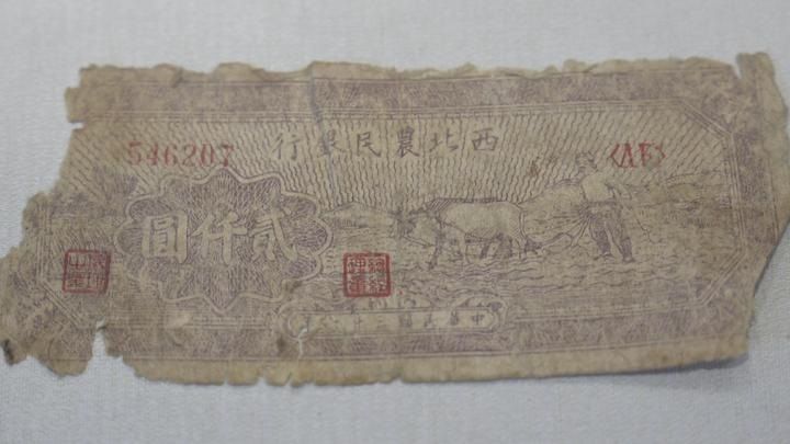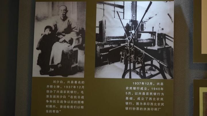 讲解员张英告诉记者,为了更贴近百姓,与阎锡山的晋钞区分开来,所以取名叫兴县农民银行。“在(兴县)农民银行的基础上,我们又成立了西北农民银行。西北农民银行当时的主要工作就是印钞。我们看到的这个就是当时建立的洪涛印刷厂,当时洪涛印刷厂的工作也非常多,从1940年成立到1949年1月,一共印的钞票价值是3.8亿元。1940年5月10日,我们在兴县孙家大院举办了开业大礼,从此西北农民银行诞生,之后在1948年12月份,西北农民银行、华北银行、北海银行合并,组建了中国人民银行,至此,西北农民银行完成了它的历史使命。”她说。