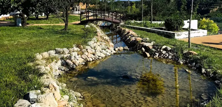小溪蜿蜒流淌,步道两旁青草如茵。(孙大军 摄)