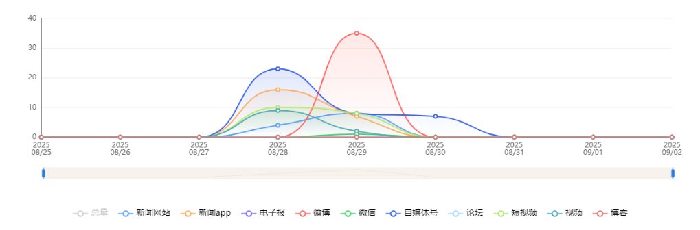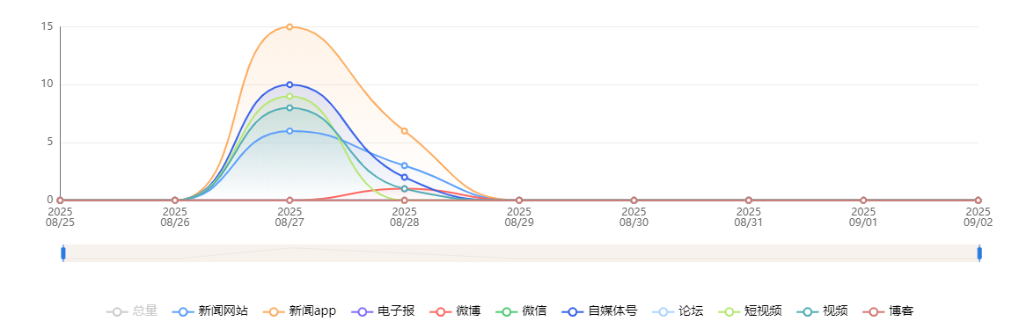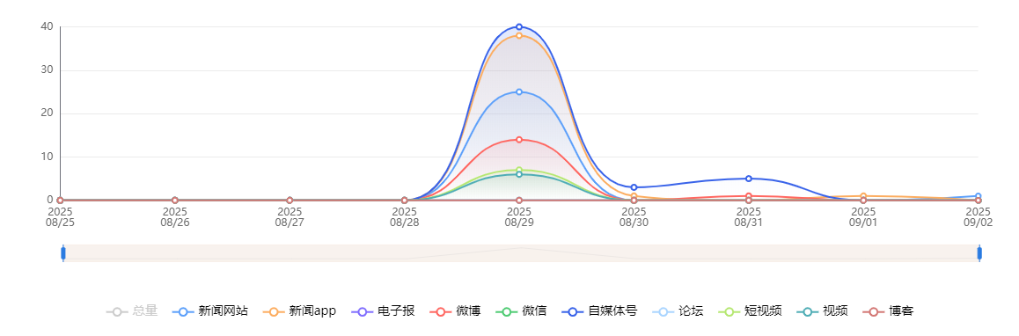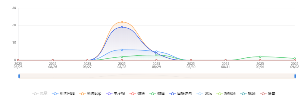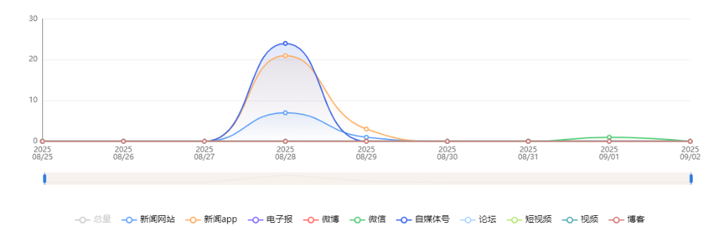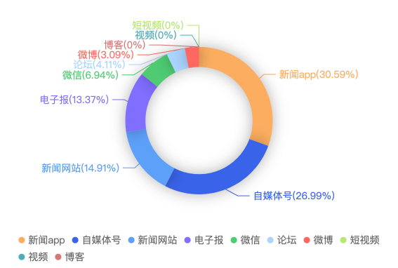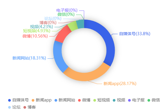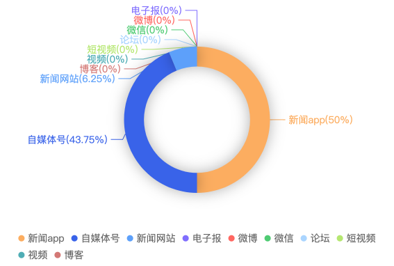 截至目前,該文章在互聯(lián)網(wǎng)上傳播總量共32篇。各信源的信息發(fā)布情況中,新聞APP占比最高,其次是自媒體號(hào)。(數(shù)據(jù)來(lái)源:新華睿思數(shù)據(jù)云圖分析平臺(tái))