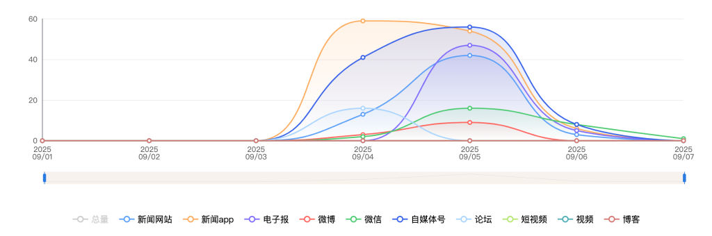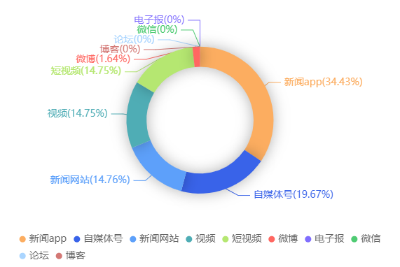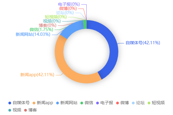 截至目前,該文章在互聯(lián)網(wǎng)上傳播總量共61篇。各信源的信息發(fā)布情況中,新聞APP占比最高,其次是自媒體號(hào)。(數(shù)據(jù)來(lái)源:新華睿思數(shù)據(jù)云圖分析平臺(tái))