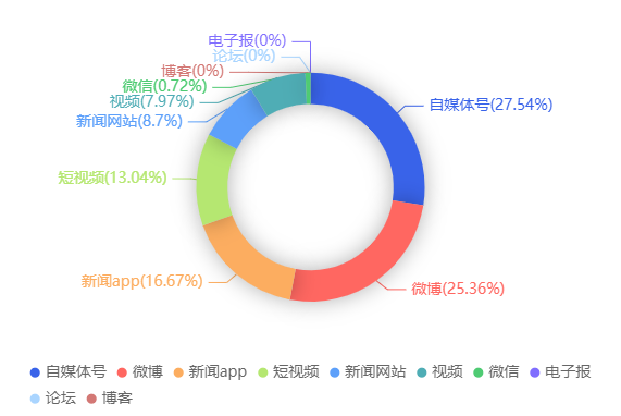 截至目前,該文章在互聯(lián)網(wǎng)上傳播總量共138篇。各信源的信息發(fā)布情況中,自媒體號(hào)占比最高,其次是微博。(數(shù)據(jù)來(lái)源:新華睿思數(shù)據(jù)云圖分析平臺(tái))