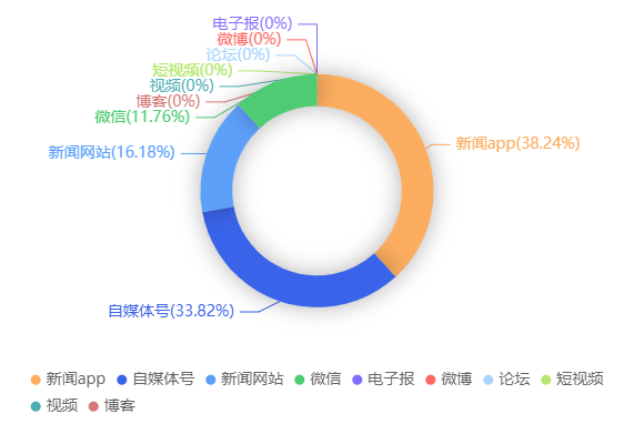 截至目前,該文章在互聯(lián)網(wǎng)上傳播總量共68篇。各信源的信息發(fā)布情況中,新聞APP占比最高,其次是自媒體號(hào)。(數(shù)據(jù)來(lái)源:新華睿思數(shù)據(jù)云圖分析平臺(tái))