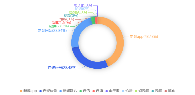 截至目前,該文章在互聯(lián)網(wǎng)上傳播總量共237篇。各信源的信息發(fā)布情況中,新聞app占比最大,其次是自媒體號。(數(shù)據(jù)來源:新華睿思·數(shù)媒智慧分析平臺)