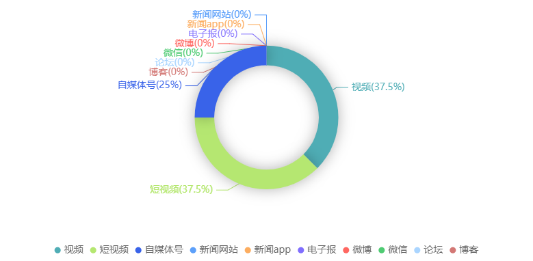 截至目前,該文章在互聯(lián)網(wǎng)上傳播總量共8篇。各信源的信息發(fā)布情況中,視頻占比最大,其次是短視頻。(數(shù)據(jù)來源:新華睿思·數(shù)媒智慧分析平臺)