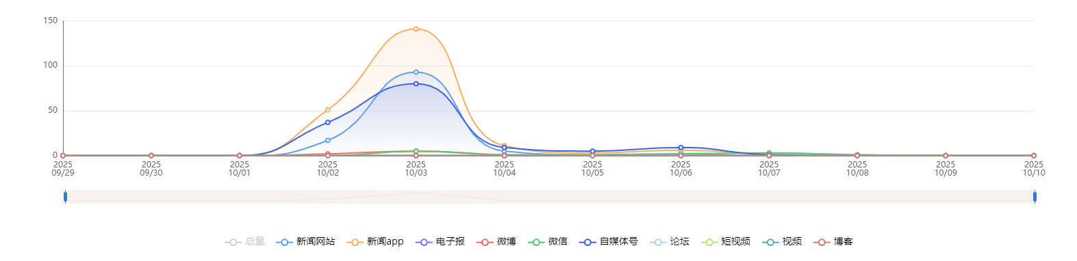 截至目前,該文章在互聯(lián)網(wǎng)上傳播總量共156篇。各信源的信息發(fā)布情況中,新聞app占比最大,其次是新聞網(wǎng)站。(數(shù)據(jù)來源:新華睿思·數(shù)媒智慧分析平臺)