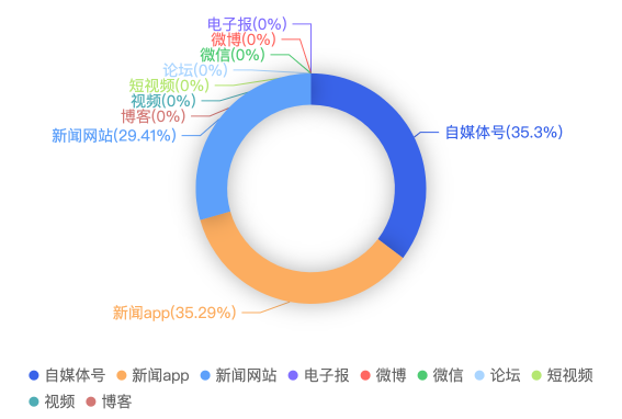 截至目前,該文章在互聯(lián)網(wǎng)上傳播總量共34篇。各信源的信息發(fā)布情況中,自媒體號占比最大,其次是新聞app。(數(shù)據(jù)來源:新華睿思·數(shù)媒智慧分析平臺)