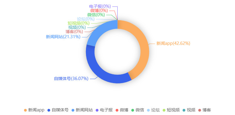 截至目前,該文章在互聯(lián)網(wǎng)上傳播總量共61篇。各信源的信息發(fā)布情況中,新聞app占比最大,其次是自媒體號。(數(shù)據(jù)來源:新華睿思·數(shù)媒智慧分析平臺)