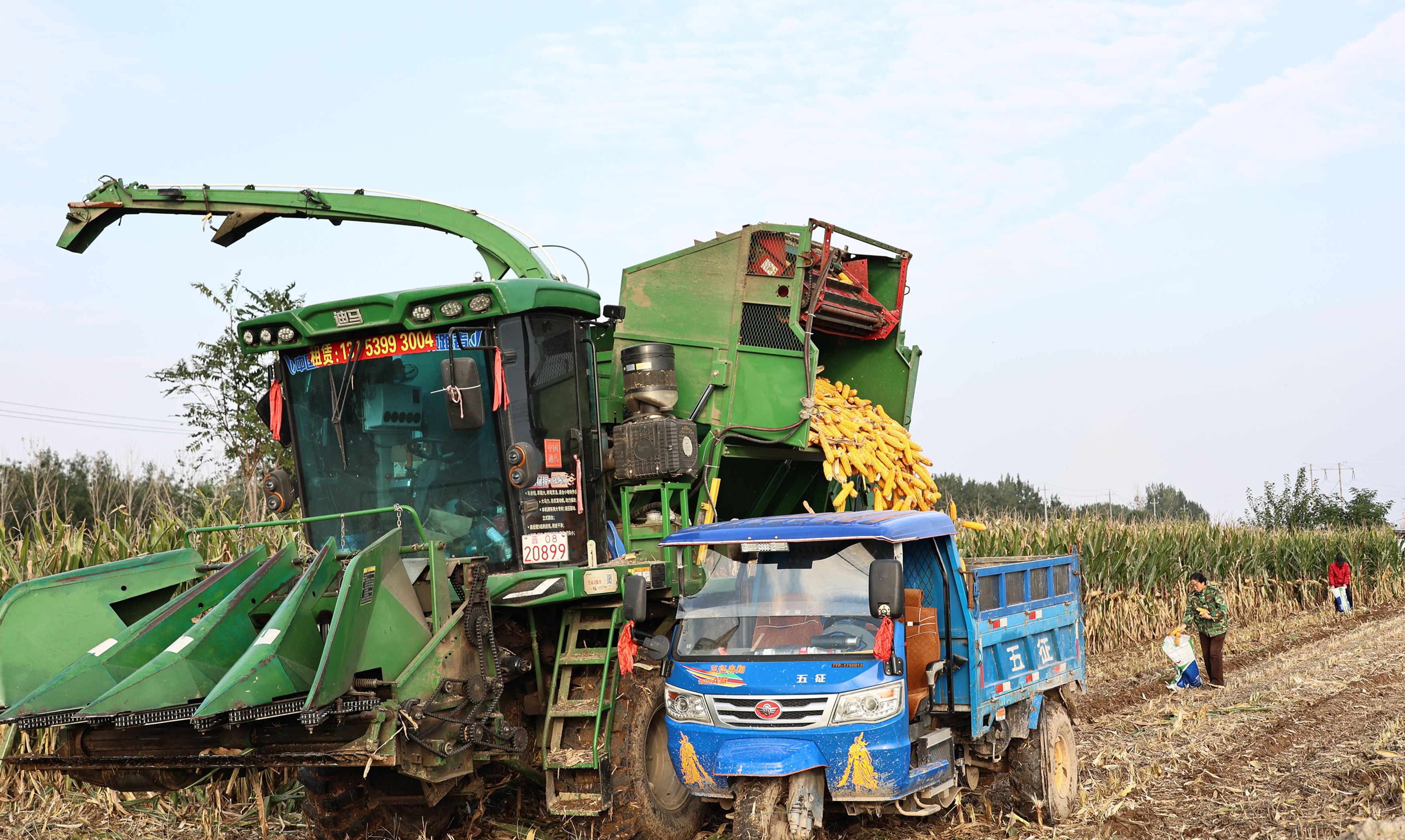 在新绛县古交镇北王马村,村民紧抓晴好天气抢收玉米。